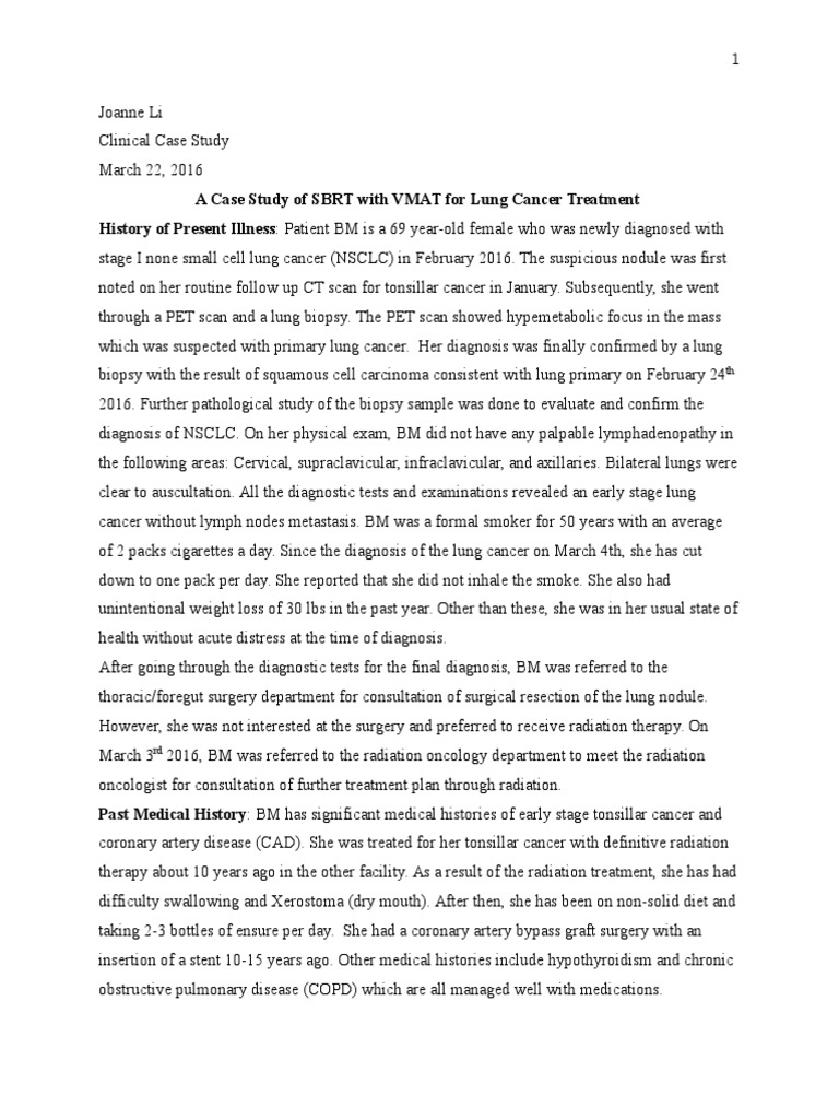 clinical case studylung cancer Radiation Therapy Lung Cancer